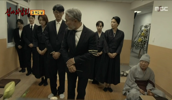 "조문객들 다 가셨는데 쉬시지 접객실에서 뭐 하고 계셨던 거예요?"